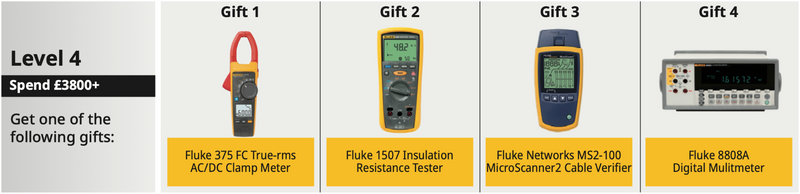 Ha nettó 150 €-nál többet költ, egy nagyszerű Fluke terméket kap, teljesen INGYEN! Minél többet költ, annál nagyobb értékű az ajándék termék.