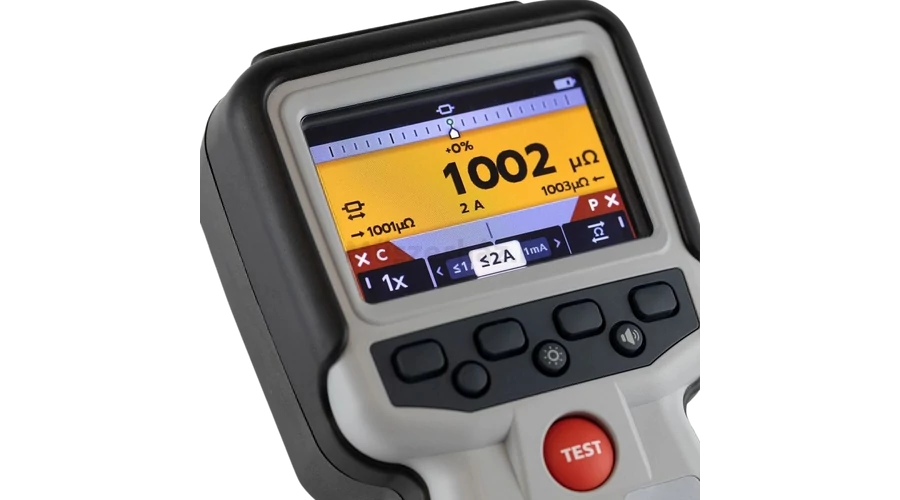 - Induktív ellenállás mód: a mérések 1 A-re beállított mérőárammal történnek a töltési idő felgyorsítása érdekében. A mérőáram automatikusan növekszik az induktivitás töltődésével. További kényelmet biztosít az intelligens „automatikus leállítás” funkció. A műszer figyeli a változás sebességét, és automatikusan leállítja a mérést, amint az eredmény stabilizálódik. Alkalmazási példák: Kis és közepes méretű villanymotorok, beleértve a vasúti vontatómotor állórész-tekercsének ellenállását Kis teljesítményű elosztó transzformátorok Folytonosságérzékelés 2000 Ω alatti ellenálláson